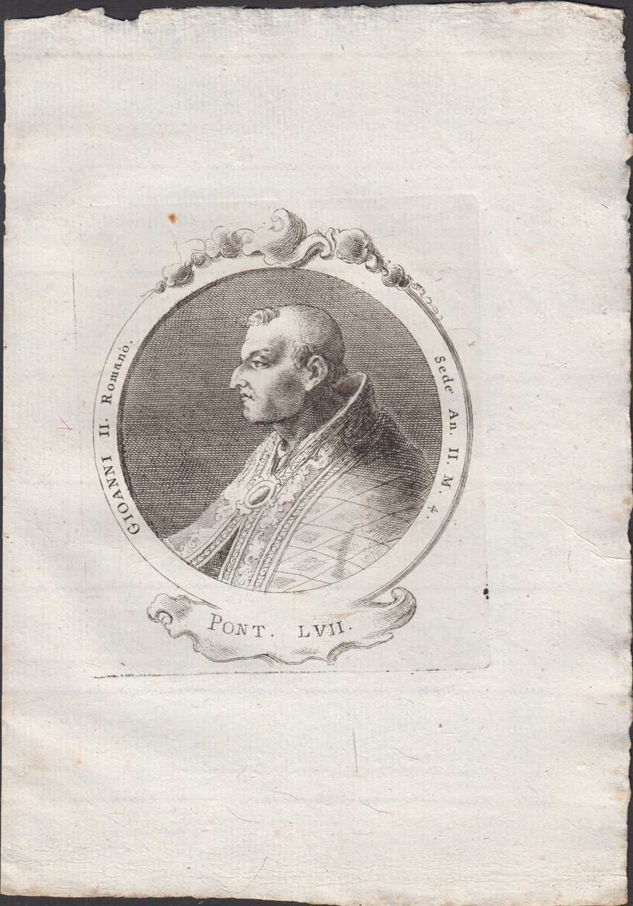 Stampa incisione Papa S. Gioanni II Romano Pont. LVII 1775 inc. G. B. Cavalieri