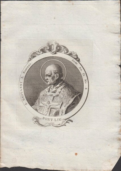 Stampa incisione Papa S. Giovanni I Toscano Pont. LIV 1775 inc. G. B. Cavalieri