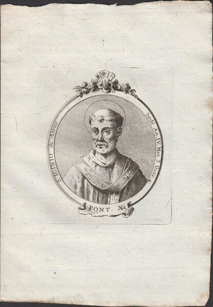Stampa incisione Papa S. Iginio di Atene Pont. X 1775 inc. G. B. Cavalieri