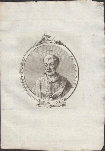 Incisione tratta da Effigies romanorum pontificum a S. Petro ad Pium VI feliciter regnantem: aeneis tabulis expressae, ordine chronologico digestae, ac in duos tomos distributae, autore Giovan Battista Cavalieri editore Remondini 1775