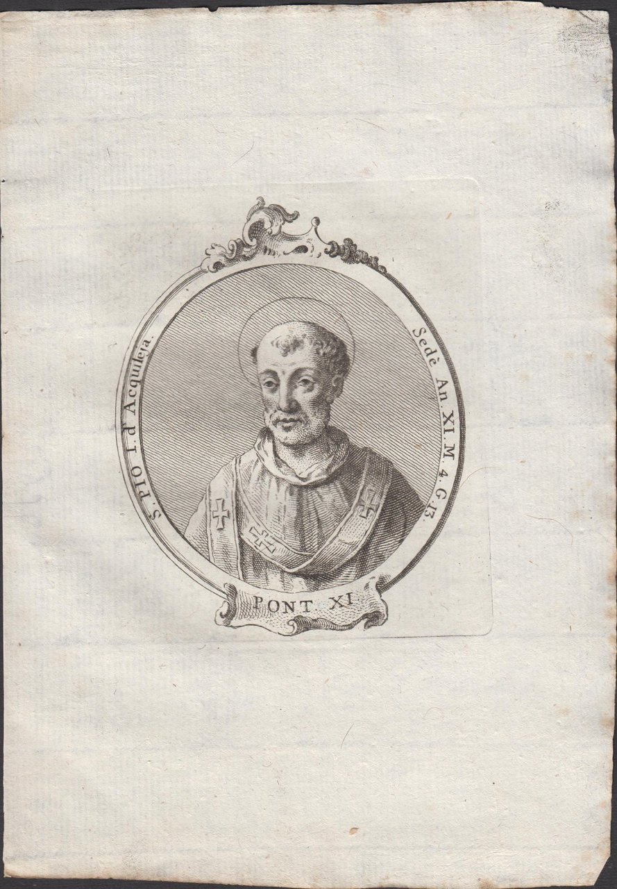 Stampa incisione Papa S. Pio I d'Aquileja Pont. XI 1775 inc. G. B. Cavalieri