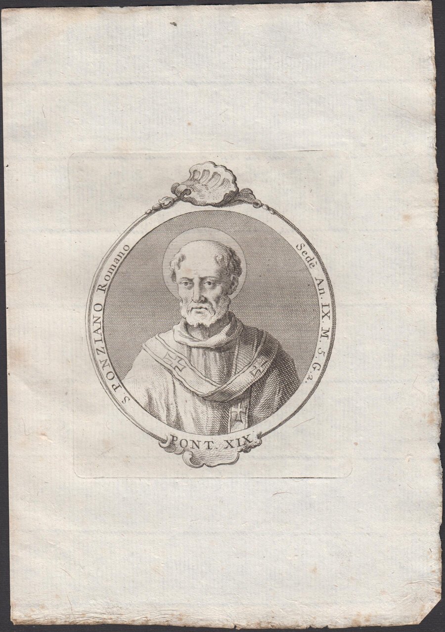 Stampa incisione Papa S. Ponziano Romano Pont. XIX 1775 inc. G. B. Cavalieri