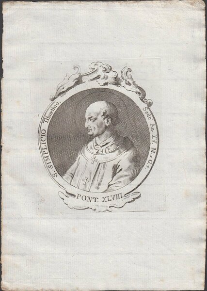 Stampa incisione Papa S. Semplicio Tiburtino Pont. XLVIII 1775 inc. G. B. Cavalieri