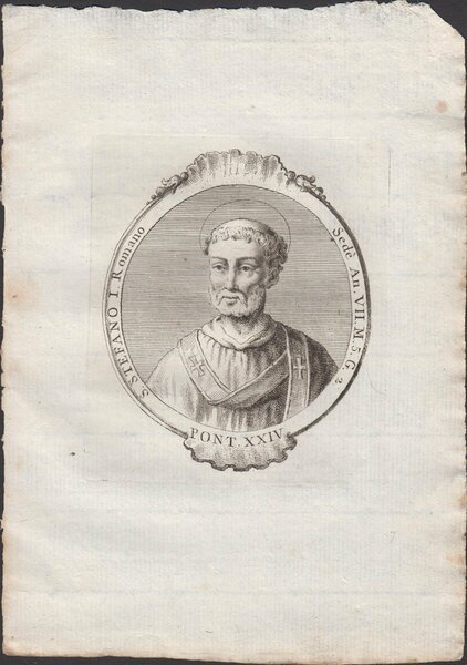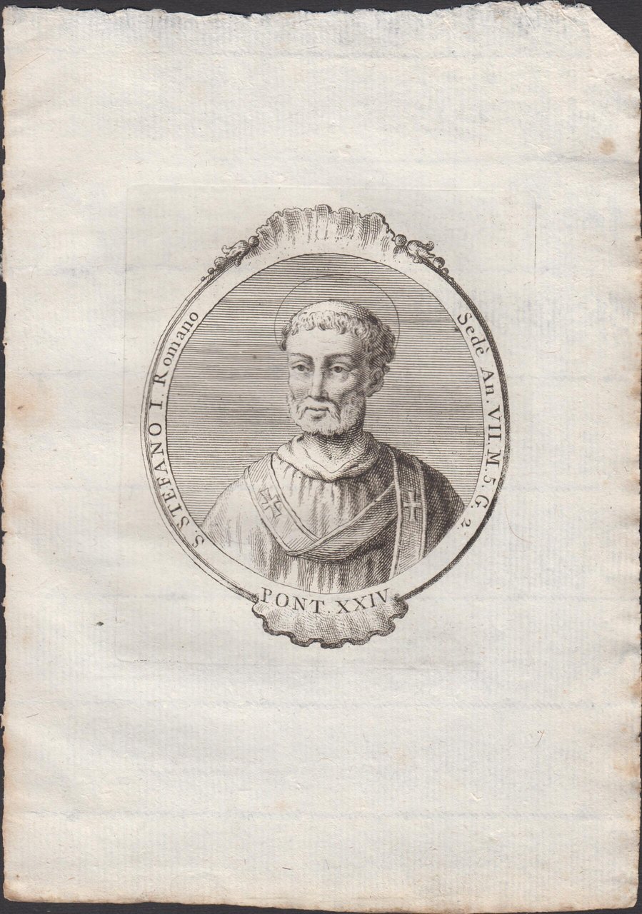 Stampa incisione Papa S. Stefano I Romano Pont. XXIV 1775 inc. G. B. Cavalieri