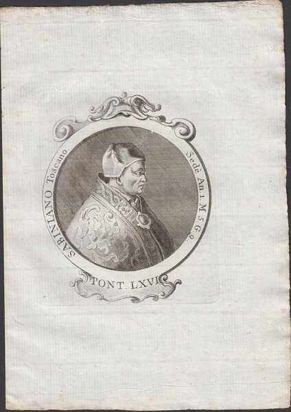 Stampa incisione Papa Sabiniano Toscano Pont. LXVI 1775 inc. G. B. Cavalieri