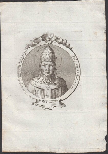 Stampa incisione Papa Silvestro I Romano Pont. XXXIV 1775 inc. G. B. Cavalieri