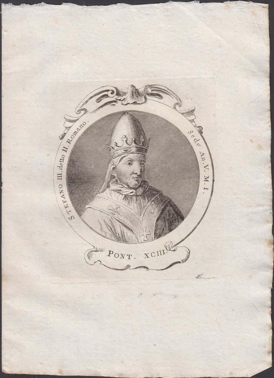 Stampa incisione Papa Stefano III detto II Romano Pont. XCIII 1775 inc. G. B. Cavalieri