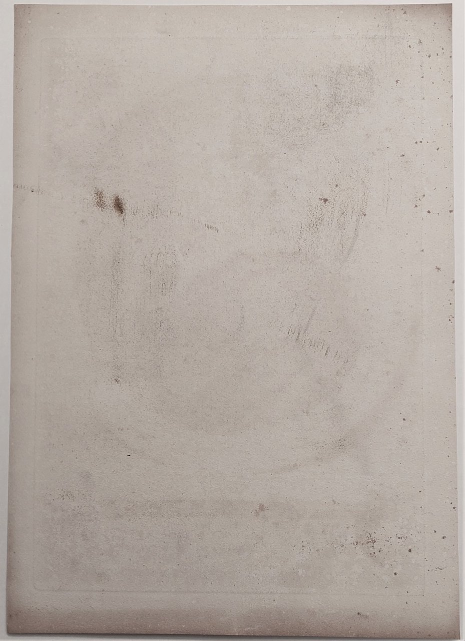 Incisione forte e nitida su carta pesante priva di vergelle, forse ristampa ottocentesca, fioriture e bruniture diffuse soprattutto ai margini come da immagine, sul retro numerose macchie.