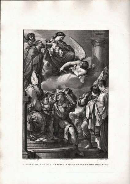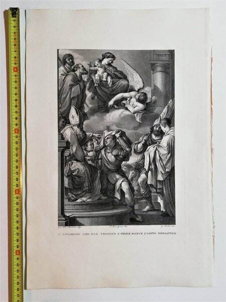 Stampa Incisione Rosaspina-S.Guglielmo riceve l'abito monastico da S.Felice 1830