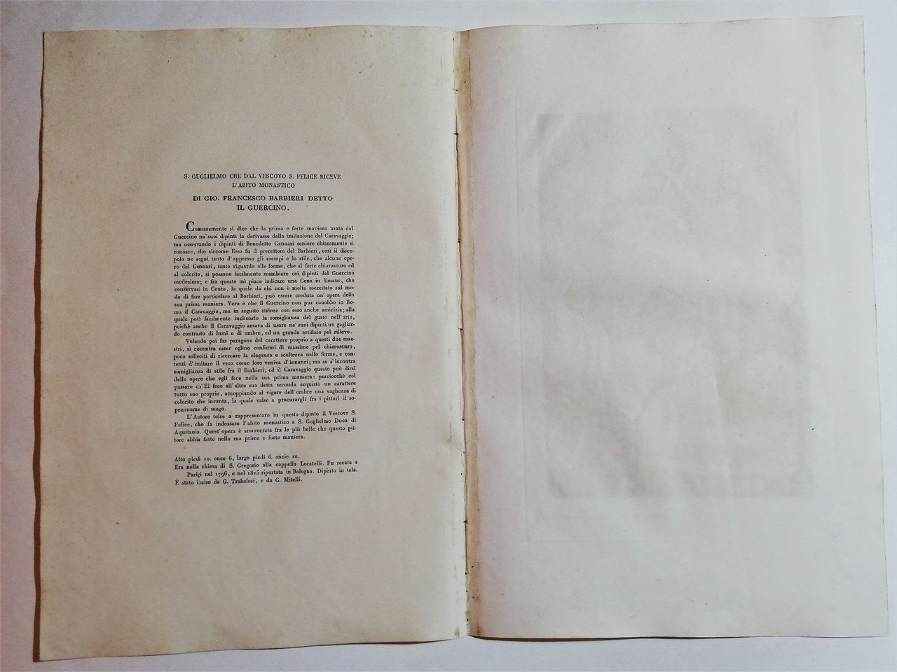 Descrizione: Incisione in rame di G. Tomba su disegno di Francesco Rosaspina da un dipinto di Gio. Franco Barbieri. cm. 46 x 30 il foglio, cm. 34 x 23 parte incisa.