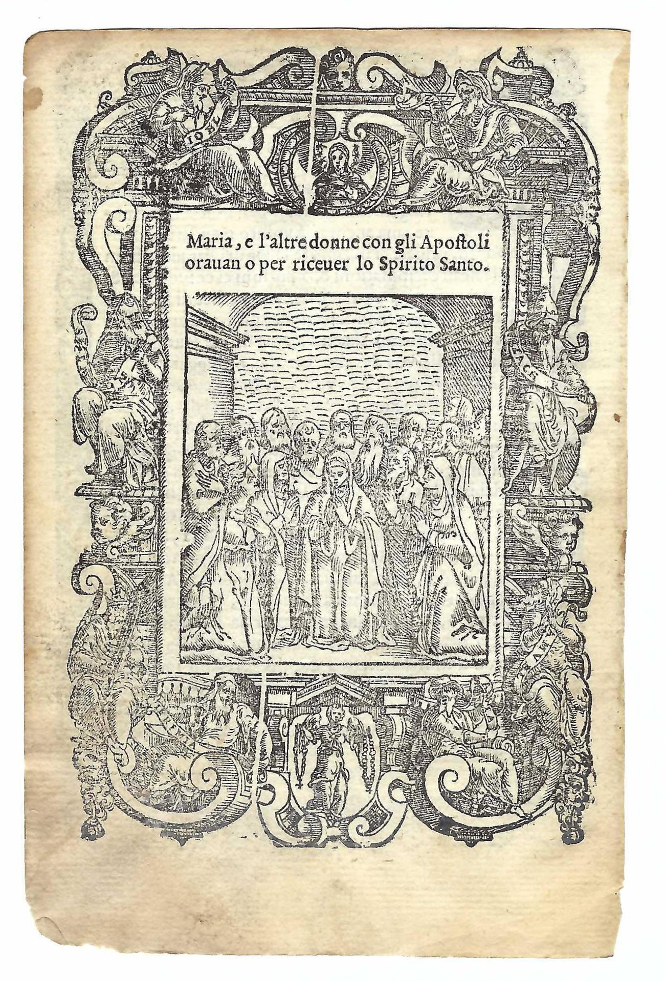 Xilografia cm. 15,7 x 10,5 il foglio, cm 13,7 x 9,4 parte incisa, bruniture ai margini, lievi mancanze al margine inferiore sinistro, margine inferiore esterno brunito e assottigliato