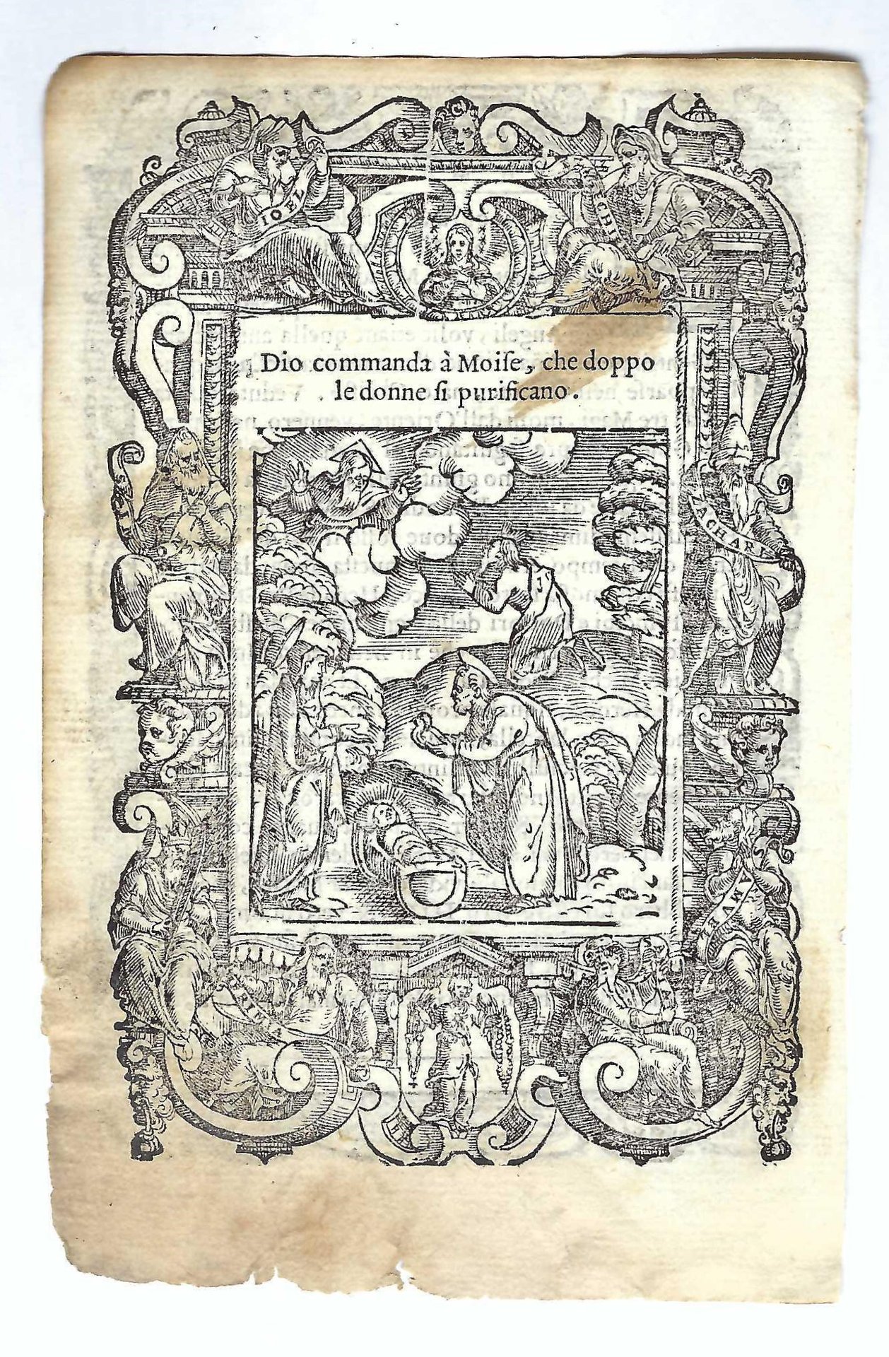 Stampa old print Dio comanda a Mosè la purificazione delle donne A. Da Castello 1575