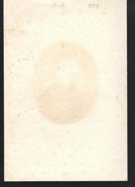 Rara incisione puntinata, bulino e pointillé, stampata in seppia, soggetto in ovale, in buone condizioni lievi fioriture dimensione foglio cm. 24,7 x 16 incisione diametro cm. 8,8 x 10,9
