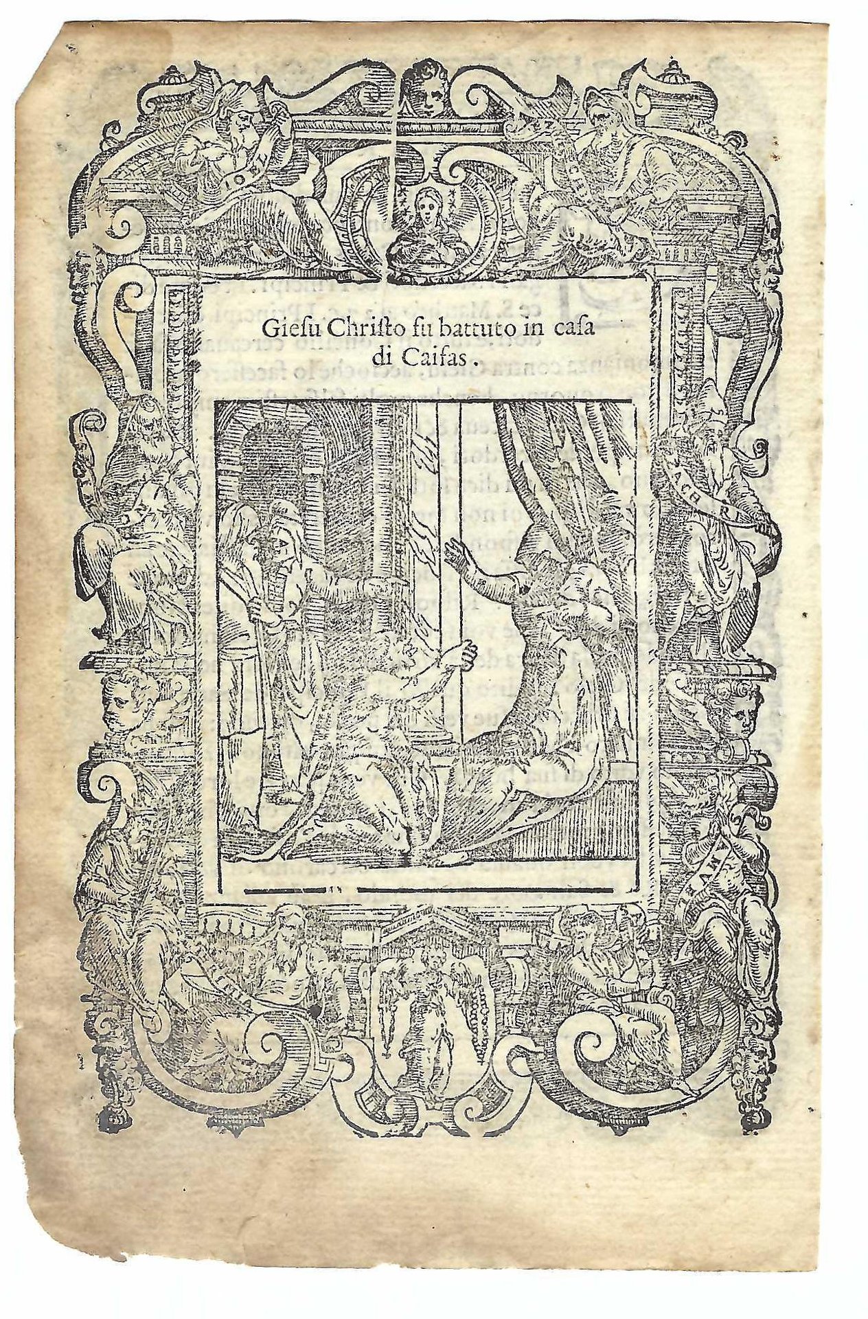 Stampa old print Gesù fu picchiato in casa di Caifa A. Da Castello 1575