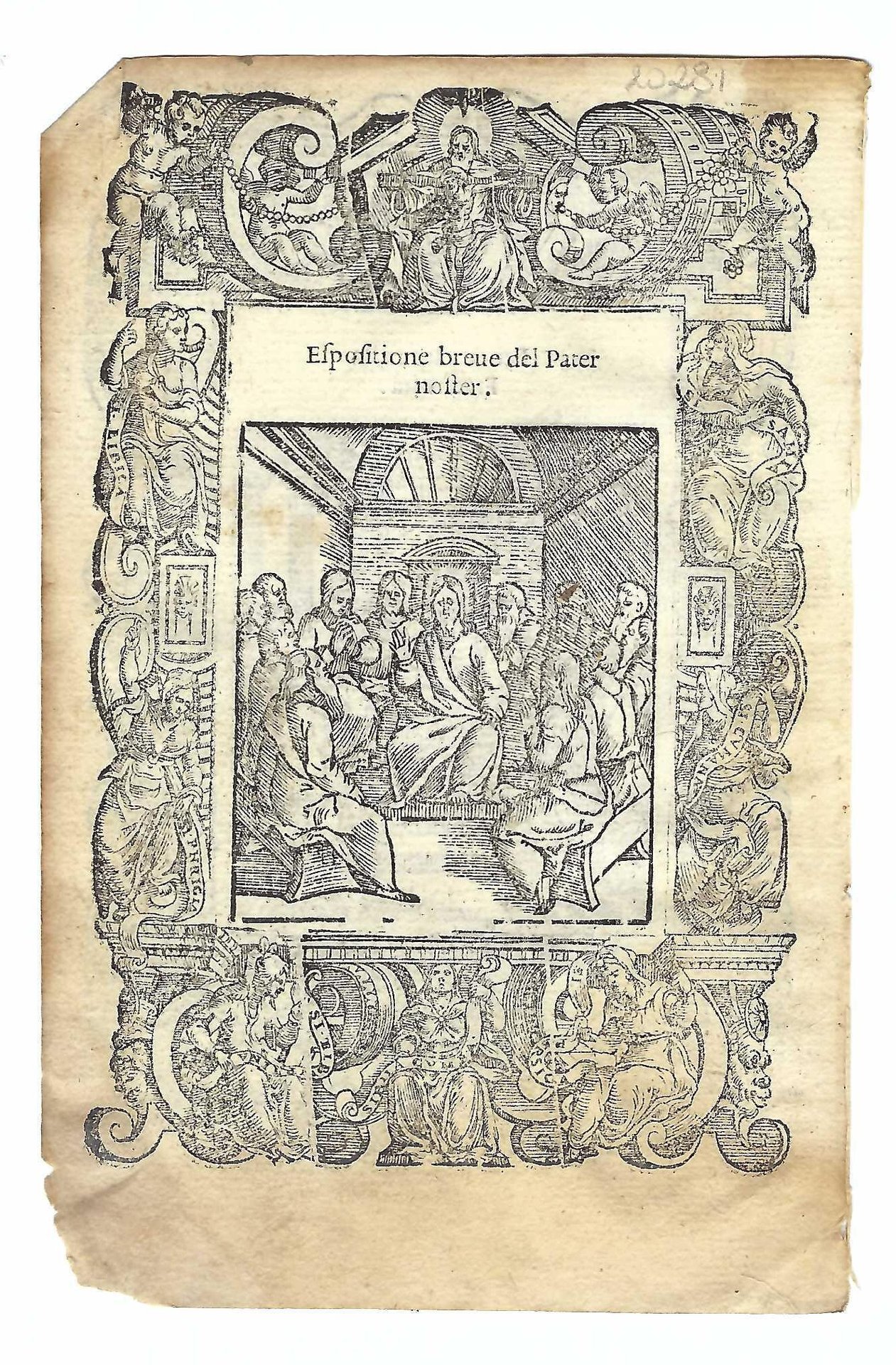 Xilografia cm. 15,7 x 10,5 il foglio, cm 13,7 x 9,4 parte incisa, bruniture ai margini, lievi mancanze al margine inferiore sinistro, margine inferiore esterno brunito e assottigliato, incisione sia al recto che al verso