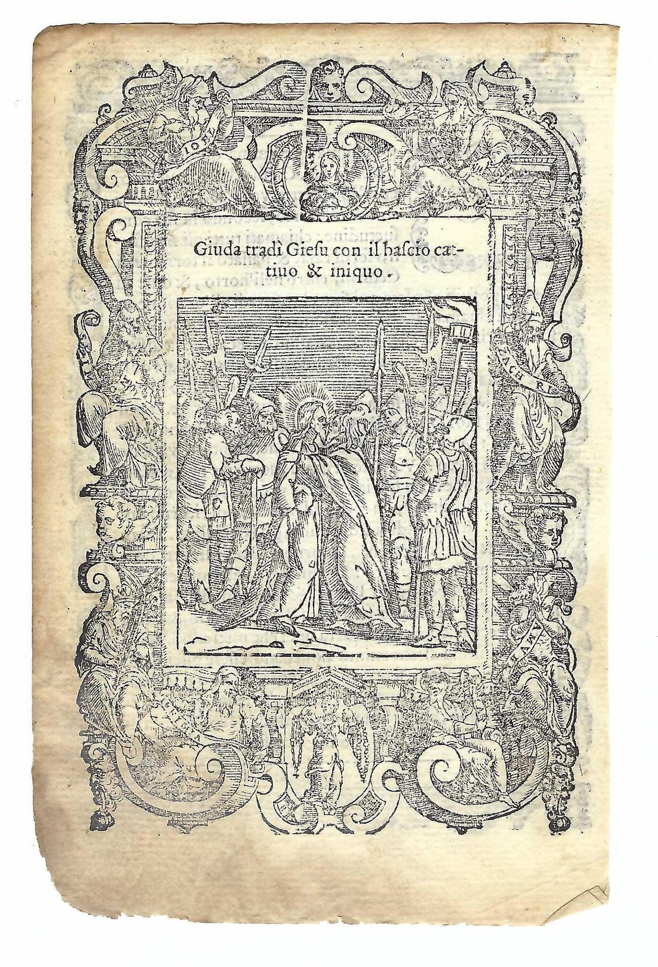 Stampa old print Giuda tradì Gesù con un bacio cattivo e iniquo A. Da Castello 1575