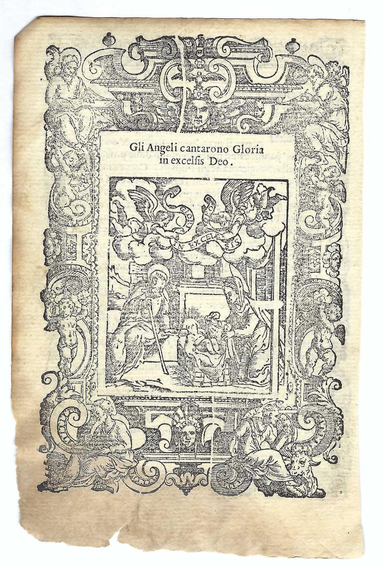Stampa old print Gli angeli cantano Gloria in excelsis Deo A. Da Castello 1575