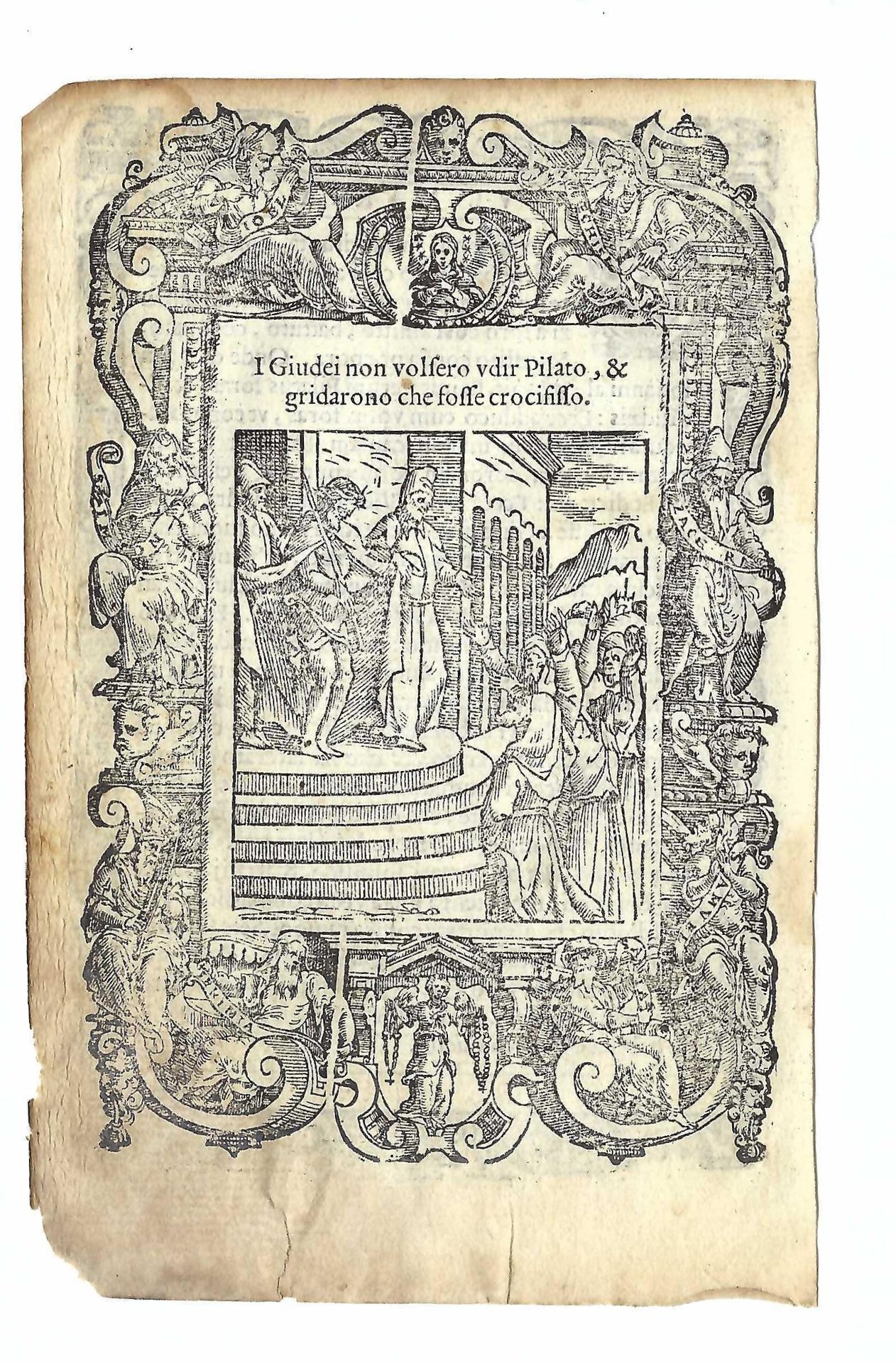 Stampa old print I Giudei gridarono che Gesù fosse crocifisso A. Da Castello 1575