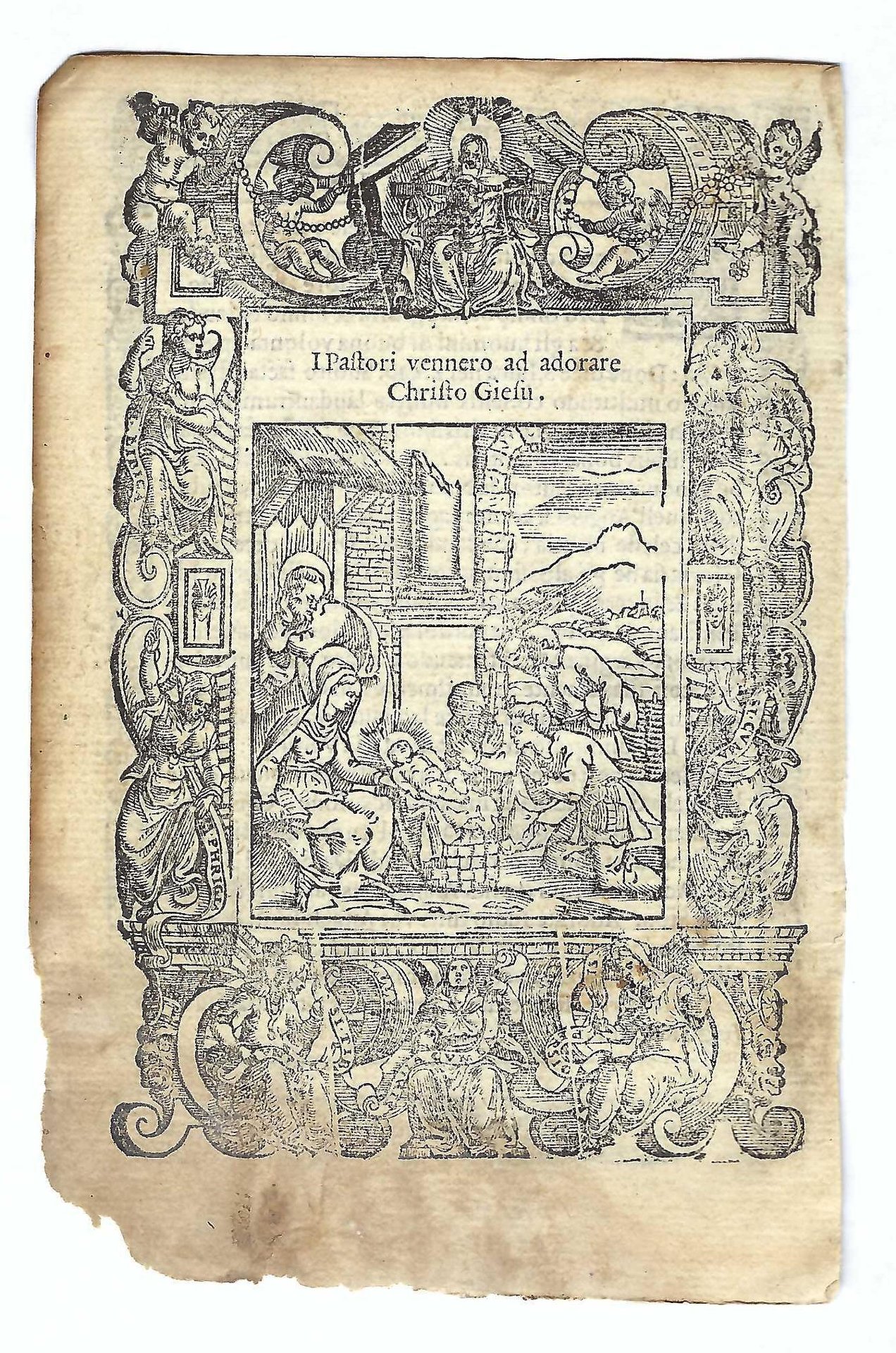 Stampa old print I pastori vennero ad adorare Gesù Cristo A. Da Castello 1575
