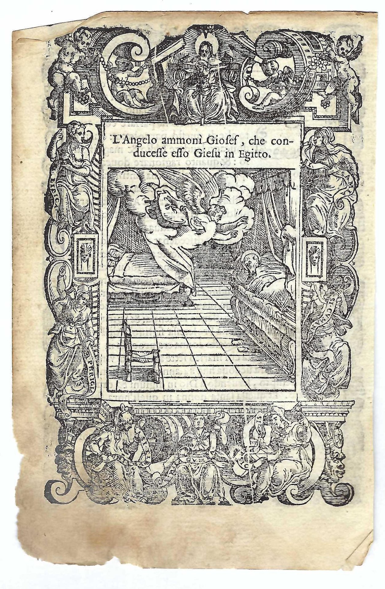 Stampa old print L'angelo ammonì Giuseppe di condurre Gesù in Egitto A. Da Castello 1575