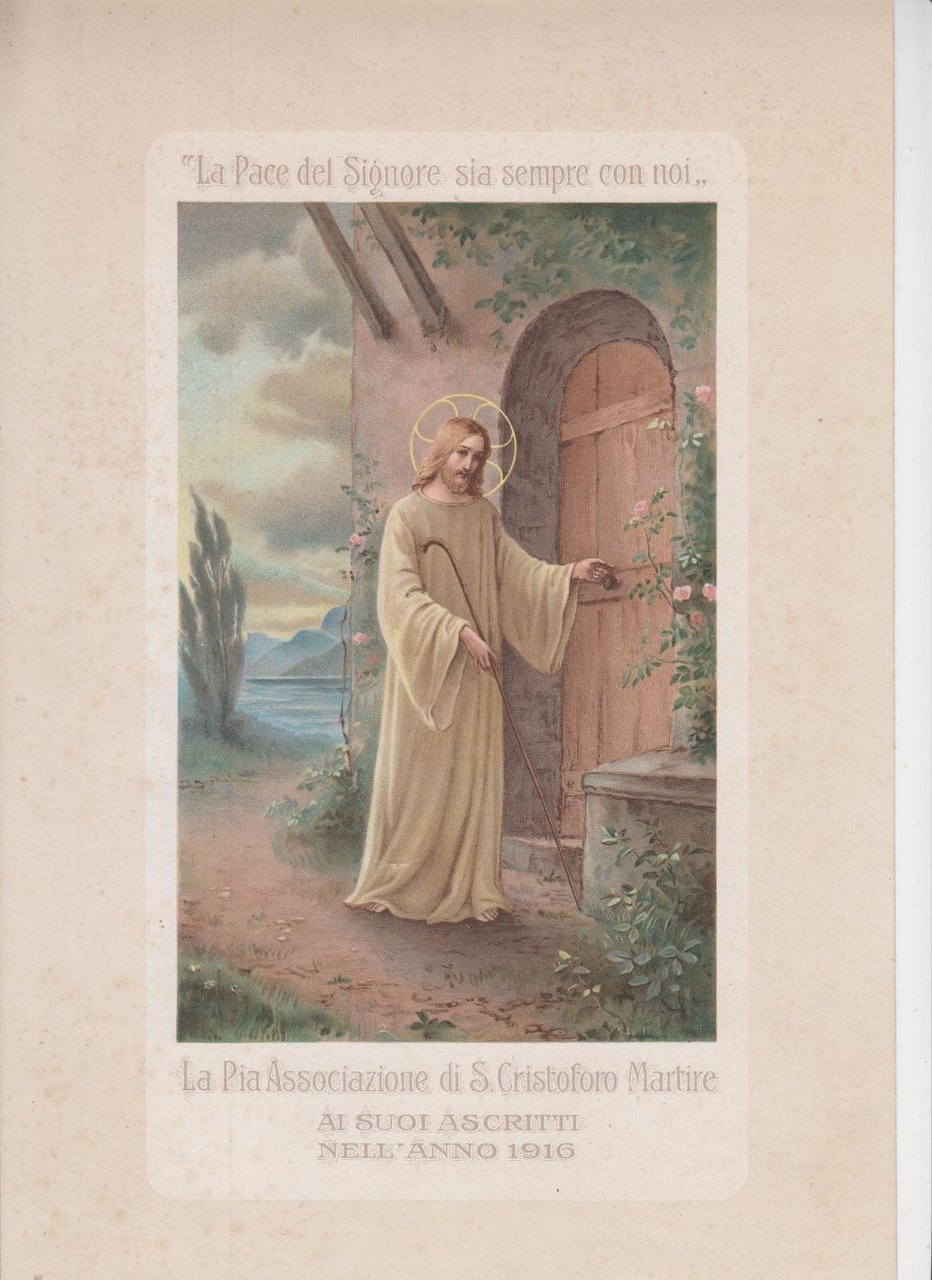 Stampa old print Litografia Gesù Cristo Pia Associazione di S. Cristoforo Martire 1916