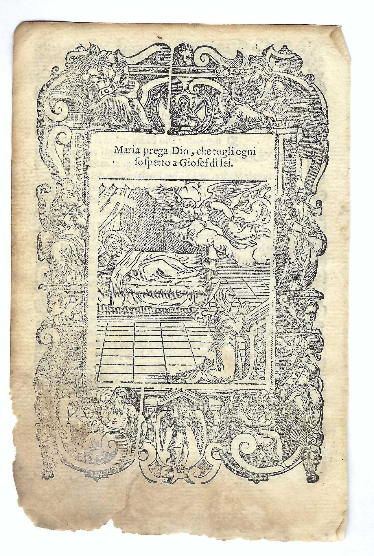 Stampa old print Maria prega Dio che tolga ogni sospetto a Giuseppe di lei A. Da Castello 1575