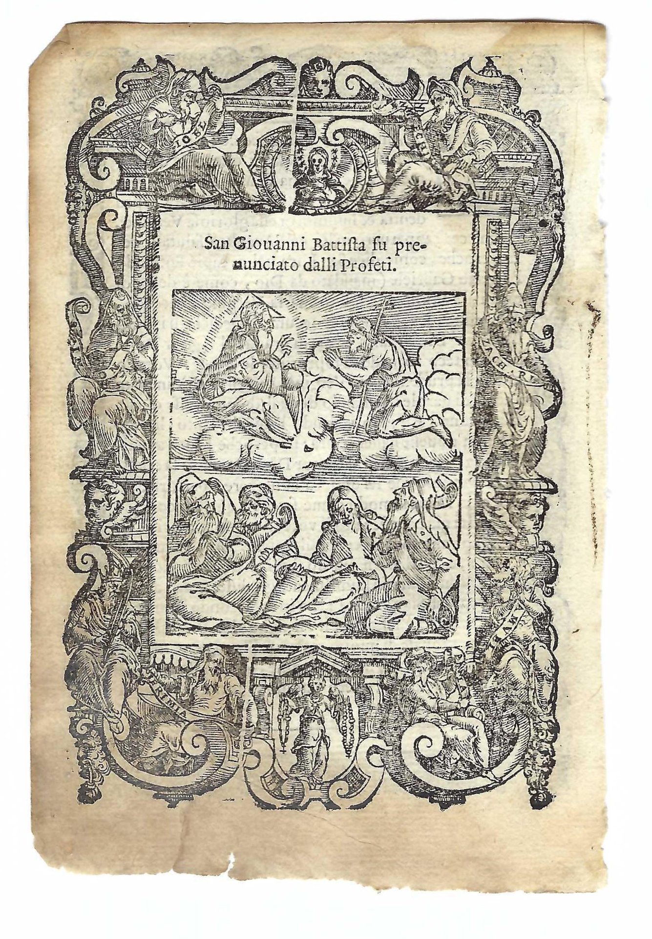 Stampa old print San Giovanni Battista fu preannunciato dai profeti 1575