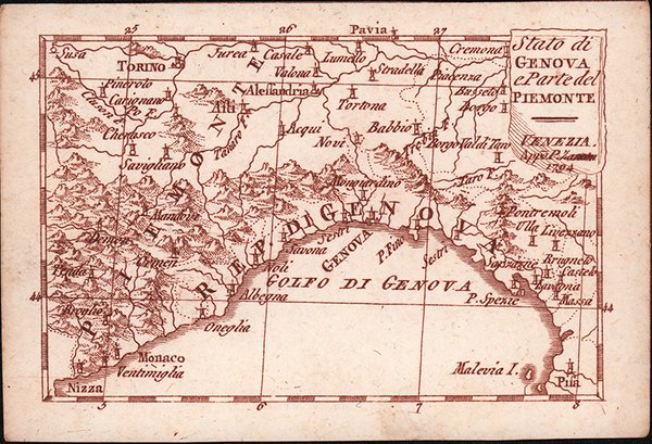 RARITA’ CARTOGRAFICA Sconosciuta piccola carta geografica con imprint di Pietro Zancon e data 1794, appartenente a un non documentato atlante in miniatura dal titolo “Atlante tascabile per le dame”, suddiviso in tre tomi, stampati “IN VENETIA Presso G. Zatta”, senza data ma circa 1795. Si tratta di carte da visita – con un apposito spazio bianco dove apporre il proprio nome – dove compare l’imprint o di Pietro Zancon (accompagnato dalla data 1794) o di Giacomo Zatta (con data 1794 o 1795), che, come si legge sul frontespizio, risulta l’editore dell’opera. Possiamo ipotizzare che la serie, iniziata da Zancon fu poi terminata dallo Zatta. Sulla carta dell’Italia – presumibilmente la prima tavola dell’opera – compare stampato il nome di Chiara Minelli Rota, nobildonna veneziana che sposò Antonio Rota nel 1794; tutte le restanti 65 carte recano lo spazio bianco privo di nome. In precedenza, le carte erano note solo attraverso una serie, priva di imprint editoriale, venduta 21 anni fa (1999) dall’Antiquariaat Haas di Bedburg Hau; parlando con Stephan Haas, la serie, priva di titolo e dati editoriali si componeva di 70 mappe. Le carte furono vendute separatamente sotto il nome di G. Bonatti, firma dell’incisore che si trova nella carta della Francia. In seguito, le tavole furono attribuite a Pietro Zaricen da Geoffrey King (cfr. Miniature Antique Maps, p. 181). Il nome dello Zaricen viene dedotto dalla carta della contea del Roussillon, che reca l’iscrizione “Venezia 1794 App.o P. Zancon”, letto erroneamente come Zaricen. Lajos Szantai include la carta dell’Ungheria nella sua cartobibliografia, traducendo il nome dell’autore in Zancen (cfr. Atlas Hungaricus 1528-1850). Sempre King, che non menziona nessuna carta firmata da Zatta, sostiene che “About the turn of the century a signed card of the first edition, with a map of the province of Roussillon in the south of France, was seen at an Ephemera Society Fair in London”. Questo esemplare sembrerebbe oggi quello conservato alla Yale University Library [1978 351], che lo descrive composto da 70 carte geografiche. Non sappiamo se sia il numero totale delle mappe, e l’assenza di un indice o dell’elenco non consente di stabilire l’esatto numero delle carte che lo compongono. http://hdl.handle.net/10079/bibid/3611852Confrontando le carte erroneamente attribuite allo Zaricen ci si accorge che la lastra è abrasa in corrispondenza della firma di Zancon o Zatta. Molto scarse sono le notizie sulle carte che possiamo ora definire “ex Zaricen”. Jason Hubbard nella sua bibliografia recente sulle carte del Giappone raffigura la carta priva dell’imprint “App.o G. Zatta” attribuendola - sulla base delle informazioni bibliografiche finora note – a Giuseppe Bonatti e Pietro Zaricen: “This is one of the 70-odd geographical cards, printed on one side only, acquired by the Haas brothers in 1999. The cards cover countries around the world and include detailed map of Italian provinces. The card with the map of France carries the inscription: G. Bonatti fece; and it is presumed that Bonatti engraved all of them although this is questioned by King” (cfr. J. Hubbard, Japoniae Insulae, n. 124). Il nostro esemplare della carta della Francia, che reca l’imprint “Venezia 1794, App.o P. Zancon” reca in basso a destra la firma di Bonatti sopra menzionata. Dunque, l’unica differenza tra questa serie di sconosciute carte sembra essere la presenza degli imprint editoriali di Zancon e Zatta, accompagnati dalla data 1794 o 1795. Giuseppe Bonatti è menzionato da V. Valerio nella qualità di incisore cresciuto alla scuola Remondini di Bassano, autore di alcune carte per l’atlante di Pazzini Carli (Siena, 1788-1800) e per l’Atlante Geografico di Carlo Antonio Barbiellini (Milano, 1807). Dal 1809 in poi lavorò come incisore per il Deposito della Guerra di Milano (cfr. V. Valerio, Cartografi Veneti, p. 153). Pietro Zancon era, assieme al . A GREAT RARITY Unknown small map with imprint by Pietro Zancon and date 1794, belonging to an undocumented miniature atlas entitled “Atlante tascabile per le dame” (Pocket Atlas for ladies), divided into three volumes, printed "IN VENETIA Presso G. Zatta", undated but about 1795. A rare set of visiting cards published in Italy features pretty little maps of all parts of the world - with a special white space where to put your name - where the imprint appears or of Pietro Zancon (accompanied by the date 1794) or Giacomo Zatta (with the date 1794 or 1795), who, as can be read on the title page, is the publisher of the whole Atlas. We can speculate that the series, started by Zancon was later terminated by Zatta. On the map of Italy is printed - presumably the first map of the work - the name of Chiara Minelli Rota, Venetian noblewoman who married Antonio Rota in 1794; all remaining 65 maps bear the blank space without names. Previously, the maps were known only through a series, without editorial imprint, sold 21 years ago (1999) by the Antiquariaat Haas of Bedburg Hau; speaking with Stephan Haas, the series, without title and printing details, consisted of 70 maps. The maps were sold separately under the name of G. Bonatti, the engraver's signature found on the map of France. Later, the plates were attributed to Pietro Zaricen by Geoffrey King (see Miniature Antique Maps, p. 181). The name of Zaricen is derived from the Roussillon county map, which bears the inscription "Venice 1794 App.o P. Zancon", incorrectly read as Zaricen. Lajos Szantai includes the map of Hungary in his cartobibliography, translating the author's name into Zancen (see Atlas Hungaricus 1528-1850). Always King, who does not mention any map signed by Zatta, said: "About the turn of the century a signed card of the first edition, with a map of the province of Roussillon in the south of France, was seen at an Ephemera Society Fair in London ". This copy would seem to be the one preserved in the Ya