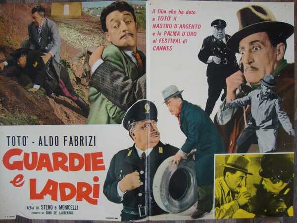 Steno e Monicelli (regista) Totò e Aldo Fabrizi in "Guardie e ladri" Fotobusta cinematografica (49b/56b).