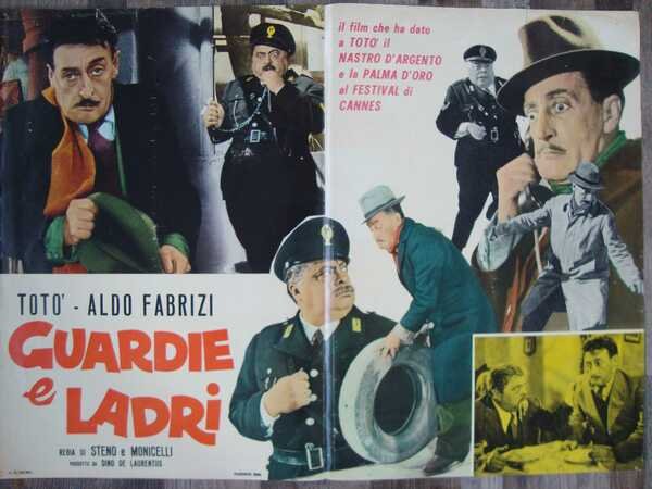Steno e Monicelli (regista) Totò e Aldo Fabrizi in "Guardie e ladri" Fotobusta cinematografica (49b/56b).