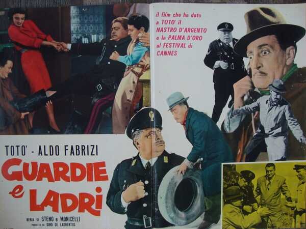Steno e Monicelli (regista) Totò e Aldo Fabrizi in "Guardie e ladri" Fotobusta cinematografica (49b/56b).