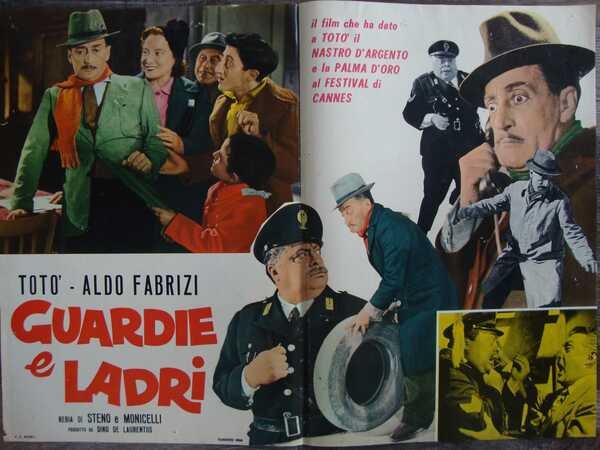 Steno e Monicelli (regista) Totò e Aldo Fabrizi in "Guardie e ladri" Fotobusta cinematografica (49b/56b).