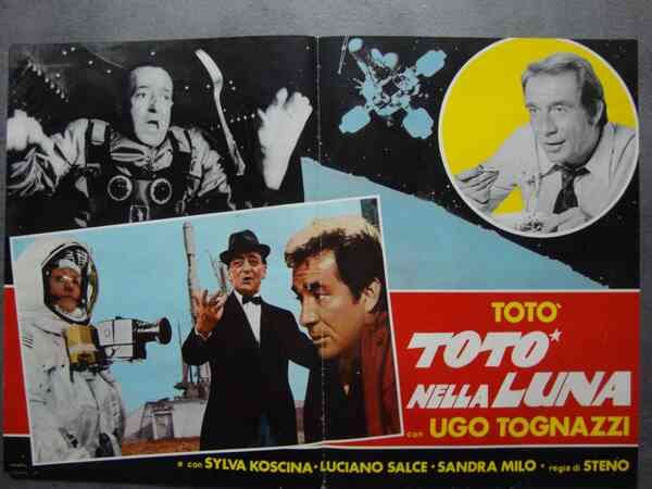 Steno (regista) Totò e Ugo Tognazzi in "Totò nella Luna" Fotobusta cinematografica. Con Sylva Koscina, Luciano Salce, Sandra Milo (49b/56b).