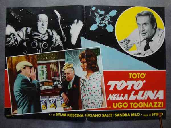 Steno (regista) Totò e Ugo Tognazzi in "Totò nella Luna" Fotobusta cinematografica. Con Sylva Koscina, Luciano Salce, Sandra Milo (49b/56b).