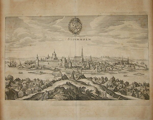 Incisione originale su rame (cm. 33,5x19,5 più margini bianchi) tratta dall’opera ‘Archontologia cosmica, sive Imperiorum, regnorum, principatuum, rerumque publicarum omnium per totum terrarum orbem commentarii.’ di Pierre d’Avity. Lieve traccia di piegatura centrale, ma esemplare in ottimo stato di conservazione. Rara.