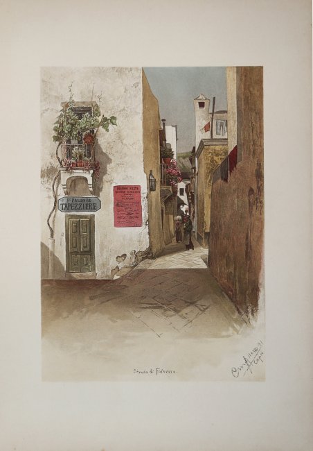 Litografia a colori, 1892 firmata da C. W. Allers. Christian Wilhelm Allers (Amburgo, 6 agosto 1857 – Karlsruhe, 19 ottobre 1915) è stato un disegnatore, pittore e illustratore tedesco. Figlio di un commerciante, iniziò a lavorare come litografo e nel 1877 si trasferì a Karlsruhe dove continuò in tale professione. Alla Kunstakademie (l'accademia statale di belle arti) fu studente del Professor Ferdinand Keller. Allers divenne noto quando pubblicò la sua collezione di stampe, Club Eintracht nel 1888. Seguirono diversi altri libri e raccolte di stampe (ad esempio una su Bismarck), tanto che all'inizio degli anni 1890 fu in grado di farsi costruire una villa a Capri, dove visse per molti anni, passando del tempo anche ad Amburgo, a Karlsruhe, e viaggiando per il mondo. C.W. Allers fu un artista naturalista. I suoi disegni sono ricchi di dettagli e hanno uno stile realistico. Perfetto stato di conservazione. Color lithograph, 1892 signed by W. Allers. ' Christian Wilhelm Allers (Hamburg, August 6, 1857 - Karlsruhe, October 19, 1915) was a German draftsman, painter and illustrator. The son of a merchant, he began working as a lithographer and in 1877 moved to Karlsruhe where he continued in that profession. At the Kunstakademie (the state academy of fine arts) he was a student of Professor Ferdinand Keller. Allers became well-known when he published his print collection, Club Eintracht in 1888. Several other books and print collections followed (for example, one on Bismarck), so much so that in the early 1890s he was able to have a villa built in Capri, where he lived for many years, also spending time in Hamburg, Karlsruhe, and traveling the world. C.W. Allers was a naturalist artist. His drawings are rich in detail and have a realistic style. Perfect state of preservation. Cfr.