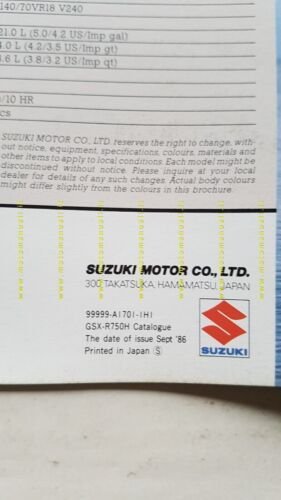 Suzuki GSX-R 750 1986 depliant INGLESE originale