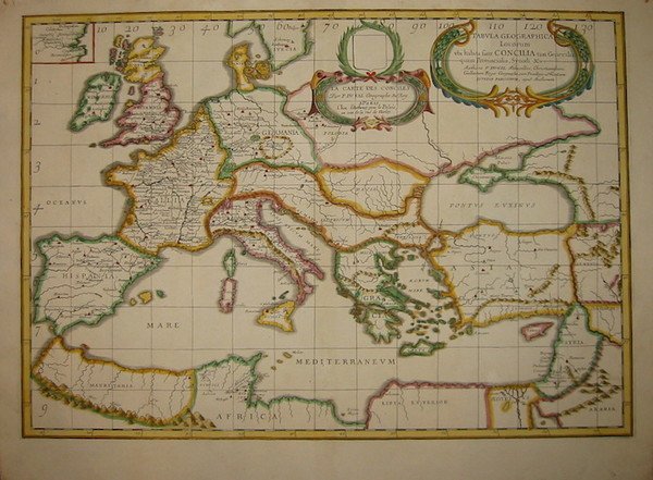 Tabula geographica locorum ubi habita sunt Concilia tam generalia quam provincialia, Synodi &c. (La Carte des Conciles.)