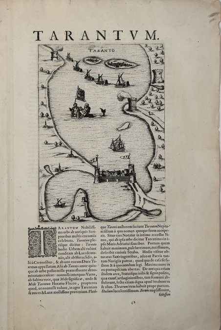 Pianta della città tratta dal "Theatrum praecipuarum urbium" celebre teatro delle città del Janssonius, sullo stile del "Civitates Orbis Terrarum" di Braun & Hogenberg. L'opera, pubblicata nel 1657, contiene 500 tavole raffiguranti città di ogni parte del mondo.Contrariamente al lavoro degli acerrimi rivali Blaeu, Janssonius si servì per la realizzazione dell'opera delle lastre di precedenti cartografi ed editori. In particolare nel 1653 egli acquisto da Abraham Hogenberg le lastre del "Civitates orbis Terrarum" che incorporò nella sua opera, ristampandole. Per le piante delle città olandesi, ordinò delle nuove lastre basate sull'atalnte che Johannes Blaeu diede alla luce nel 1649. Per molte delle opere contenute nel 5° volume, quello dedicato all'Italia e denominato "Theatrum celebriorum urbium Italiae.", si servì delle lastre realizzate da Jodocus Hondius per l'opera "Italia Hodierna." del 1627.A differenza di queste ultime il formato è in-folio, con testo sia nel recto che nel verso. Incisioni in rame, in ottimo stato di conservazione. Rarissima. Pianta della città tratta dal "Theatrum praecipuarum urbium" celebre teatro delle città del Janssonius, sullo stile del "Civitates Orbis Terrarum" di Braun & Hogenberg. L'opera, pubblicata nel 1657, contiene 500 tavole raffiguranti città di ogni parte del mondo.Contrariamente al lavoro degli acerrimi rivali Blaeu, Janssonius si servì per la realizzazione dell'opera delle lastre di precedenti cartografi ed editori. In particolare nel 1653 egli acquisto da Abraham Hogenberg le lastre del "Civitates orbis Terrarum" che incorporò nella sua opera, ristampandole. Per le piante delle città olandesi, ordinò delle nuove lastre basate sull'atalnte che Johannes Blaeu diede alla luce nel 1649. Per molte delle opere contenute nel 5° volume, quello dedicato all'Italia e denominato "Theatrum celebriorum urbium Italiae.", si servì delle lastre realizzate da Jodocus Hondius per l'opera "Italia Hodierna." del 1627.A differenza di queste ultime il formato è in-folio, con testo sia nel recto che nel verso. Incisioni in rame, in ottimo stato di conservazione. Rarissima. Cfr.