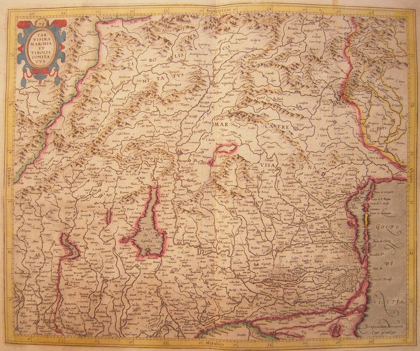 Incisione su rame di dimensioni 12x16 cm. Condizioni : USATO - Stato : Buono, ordinari segni d'uso e del tempo. Alcuni segni di foxing. Altre note : Carta raffigurante il Tirolo e parte dell'Italia nord-orientale. Riduzione semplificata ma senza varianti del prototipo mercatoriano. Ripetuta in varie edizioni olandesi, inglesi e francesi, la si trova la prima volta in "Atlas minor Gerardis Mercatoris J. Hondius & J. Janszoon". Scheda bibliografica tratta da "Il territorio trentino-tirolese nell'antica cartografia" di Gino Tomasi, scheda n. 19. "<br>
