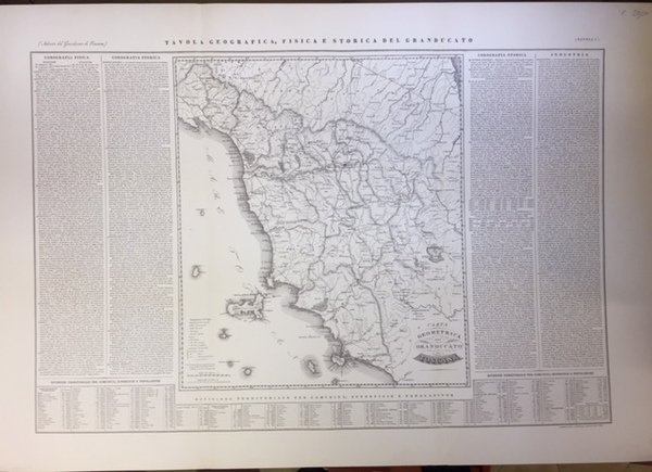 Ristampa dell'edizione 1832, Firenze, Stamperia Granducale. Carta in formato cm.57,3x85. In margine alla carta ricche nozioni di Corografia fisica e storica, Topografia, Industria, Statistica. Codice libreria 90286.