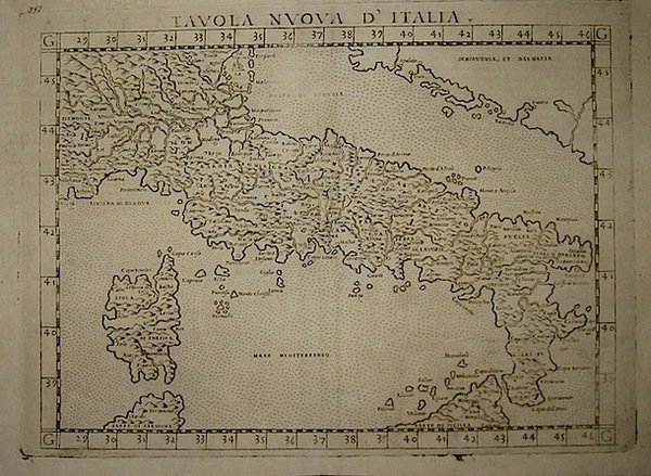 Carta geografica originale (cm. 26x19 più margini bianchi) tratta da ‘La Geografia di Claudio Tolomeo’. Ottimo esemplare. Borri, 35.