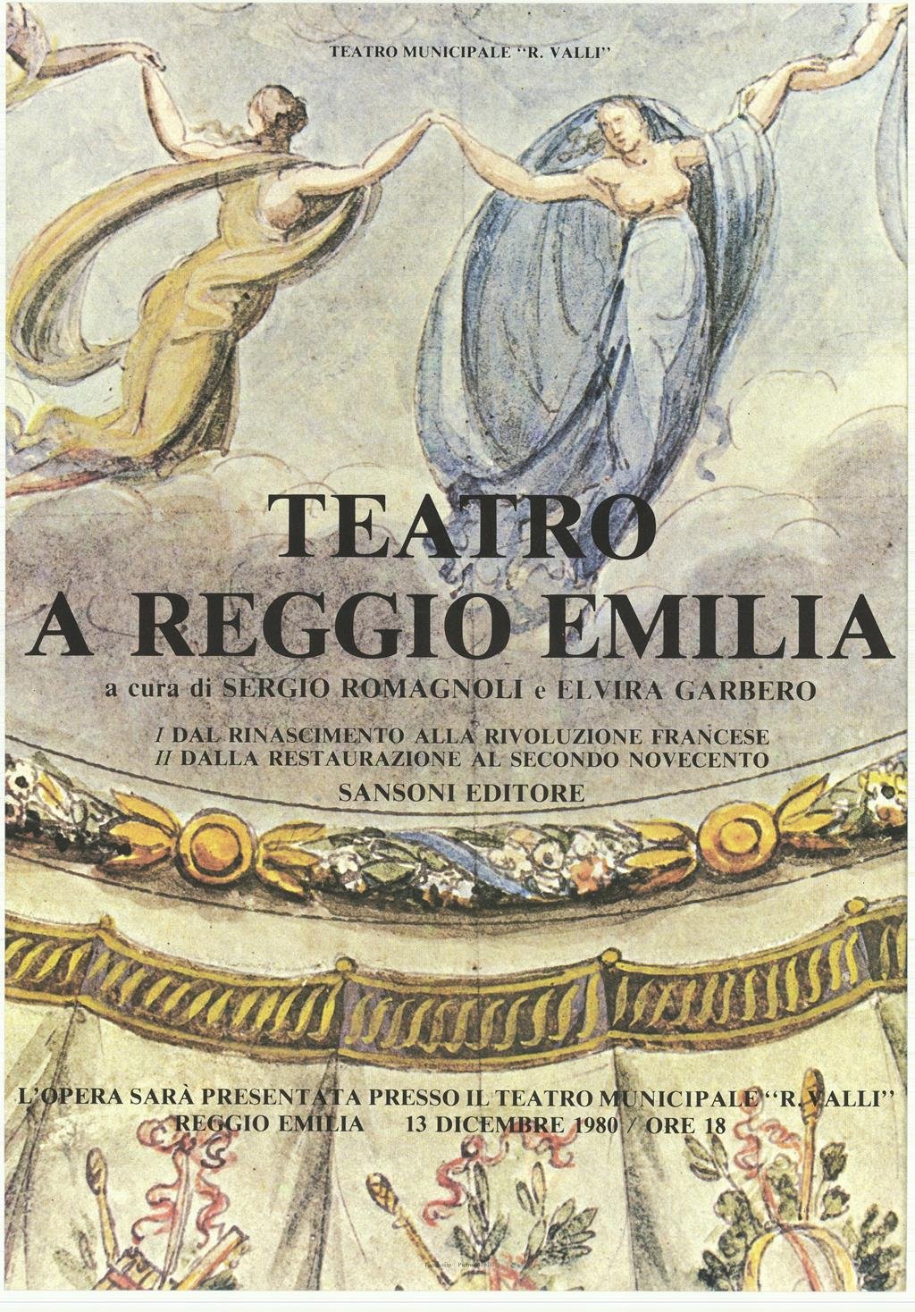 Poster originale. Locandina. Teatro Municipale R. Valli, a cura di Sergio Romagnoli e Elvira Garbero, dal Rinascimento alla Rivoluzione Francese, dalla Restaurazione al secondo Novecento, Sansoni editore, presentazione dell'opera 13 dicembre 1980. Buone condizioni