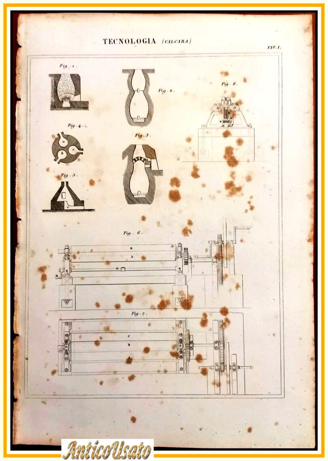 Tecnologia CALCARA Tavola Incisione Stampa Antica 1866