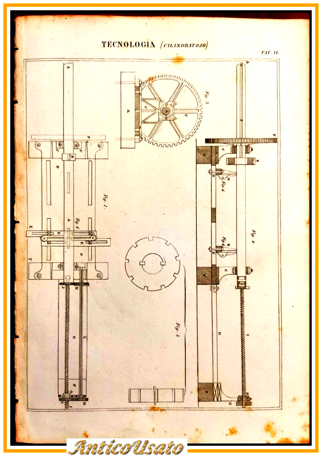 Tecnologia CILINDRATOJO Tavola Incisione Stampa Antica 1866 cilindratoio