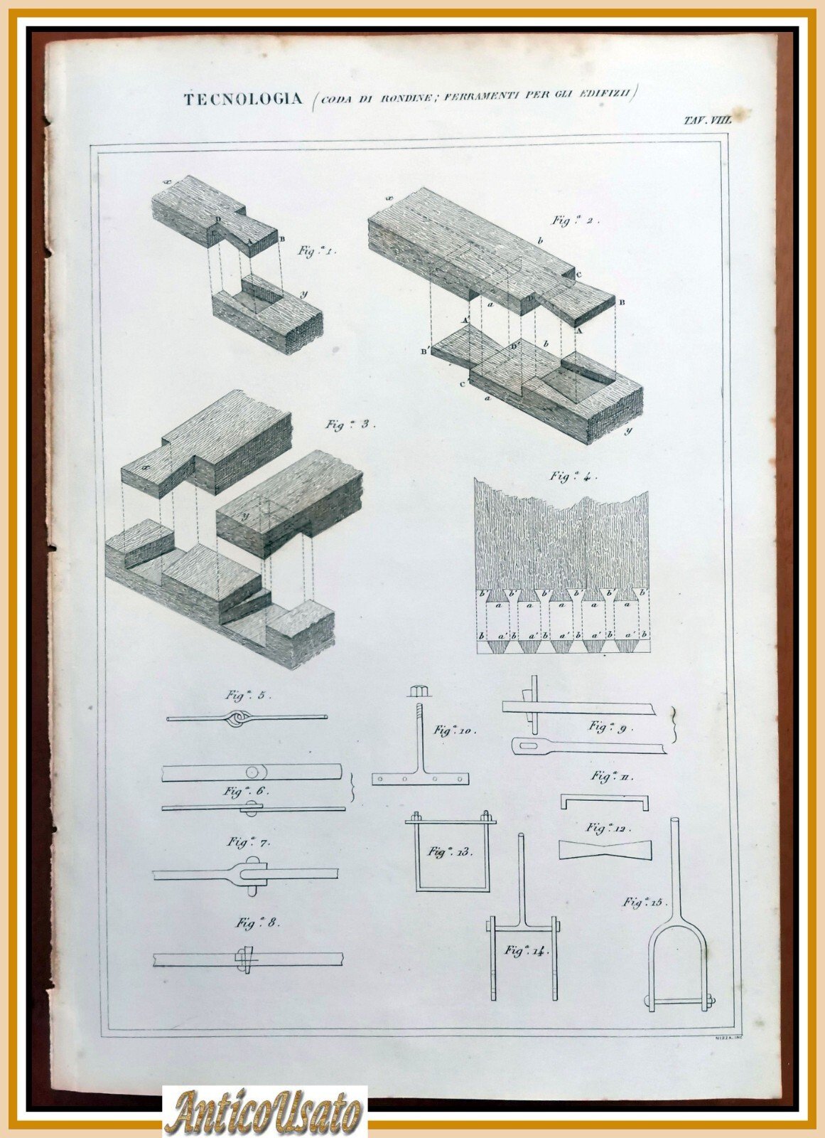 Tecnologia CODA DI RONDINE FERRAMENTA PER EDIFICI Incisione Stampa Antica 1866