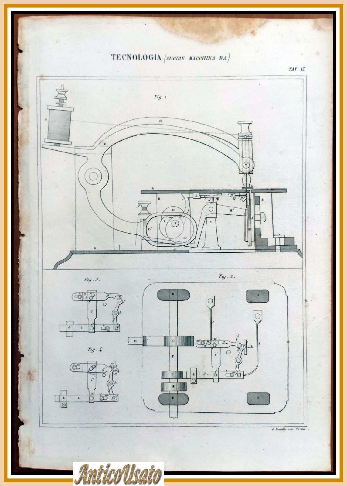 Tecnologia MACCHINA DA CUCIRE Tavola Incisione Stampa Antica 1866