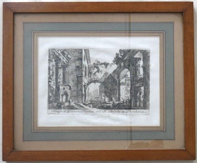 1790 circa. Incisione in rame all'acquaforte, b/n, cm 18,5 x 24 circa (alla lastra) più ampi margini. Francesco Piranesi (Roma, 1758 circa - Roma, 1810), figlio del grande architetto e incisore Giovan Battista Piranesi fu anch'egli incisore e antiquario. Ben impressa e in ampi margini, buono stato di conservazione (la cornice è solo di presentazione, non rientra nell'ordine).