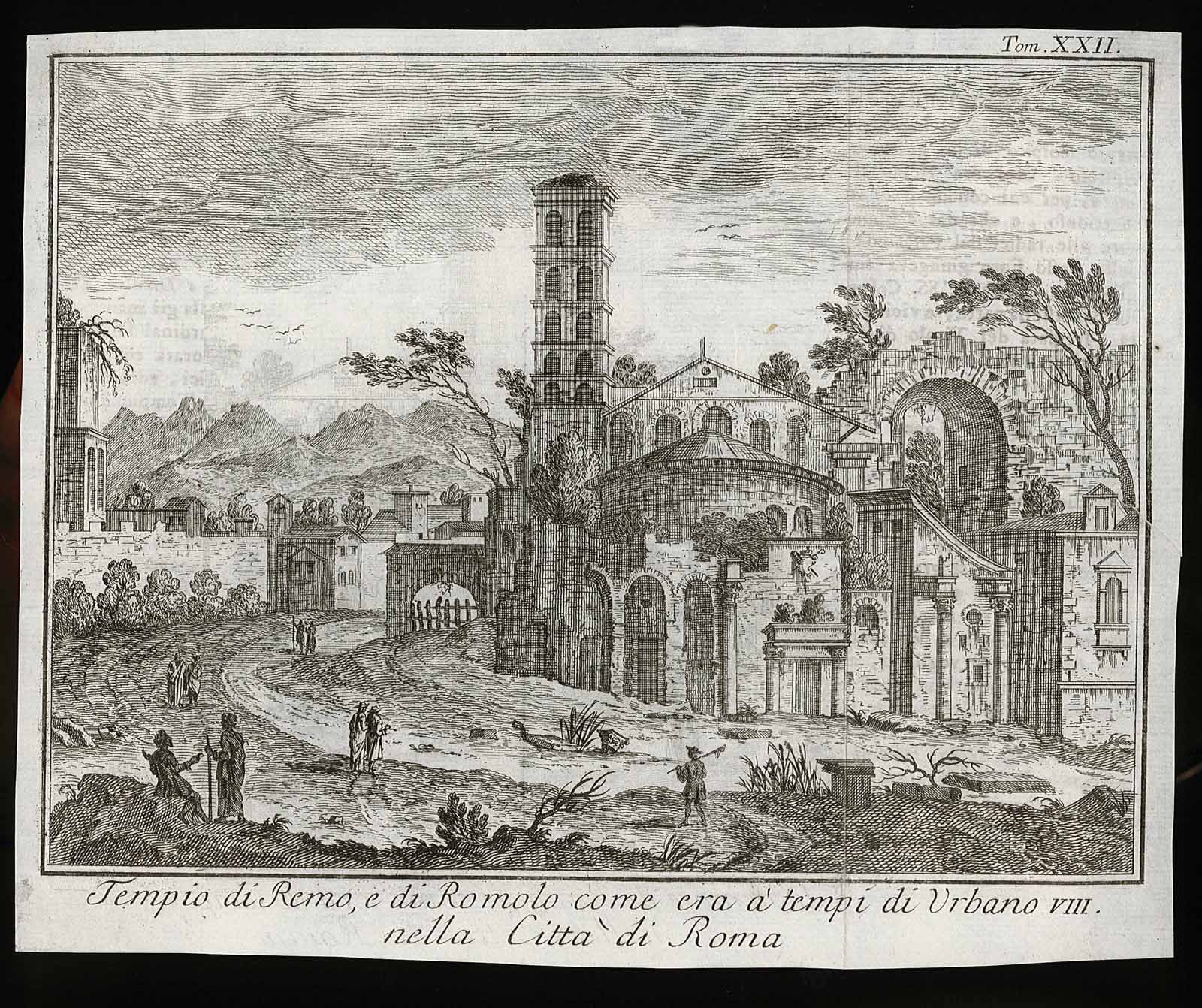 Tempio di Remo, e di Romolo come era à tempi di Urbano III° nella Città di Roma.