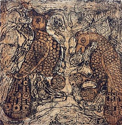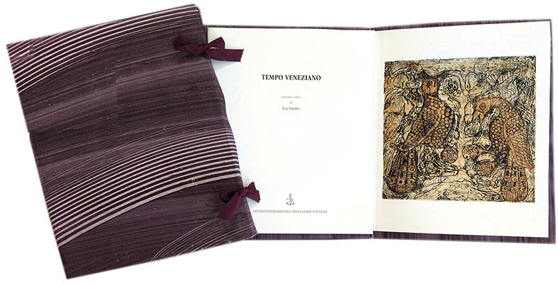 Libro d'artista realizzato nel 2018. L’opera è una incisione sperimentale a stucco su matrice mm 195 x 200 stampata su carta Rosaspina Fabriano. Tiratura 12 esemplari numerati e firmati. Formato libro mm 310 x 235. Il libro, cucito a filza, è raccolto in cartella decorata a mano con la tecnica all’amido.